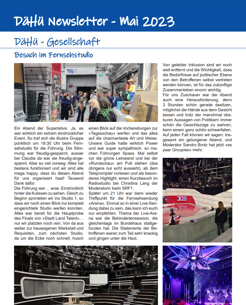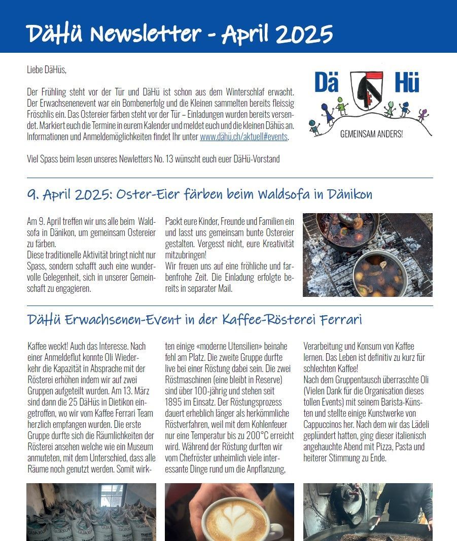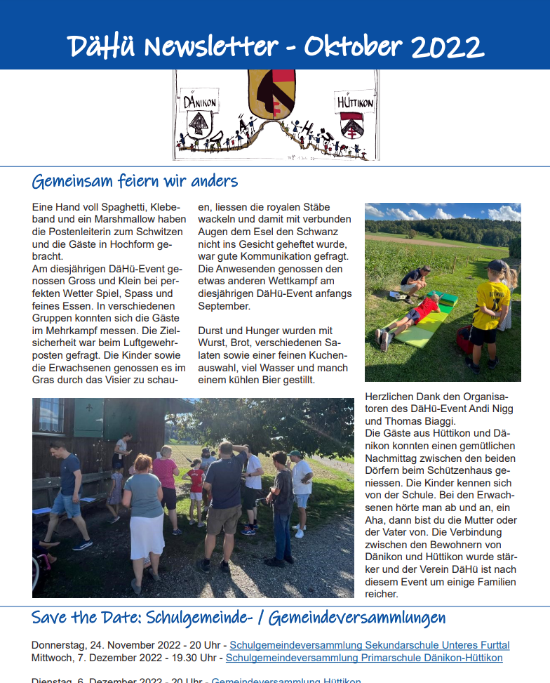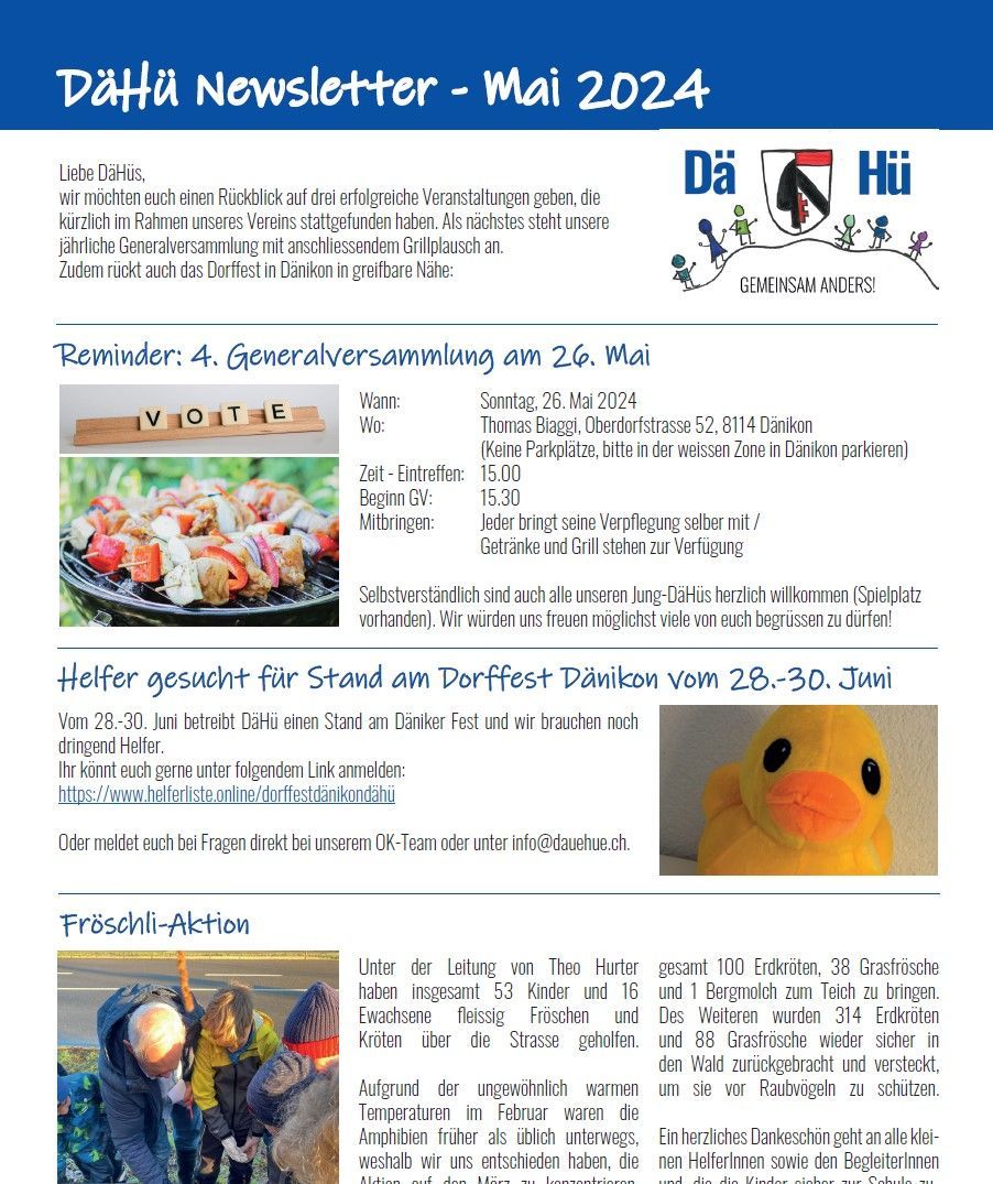 Unter anderem mit den Resultaten der Generalversammlung und den Details zum «DäHü verbindet» Event am 4. September.