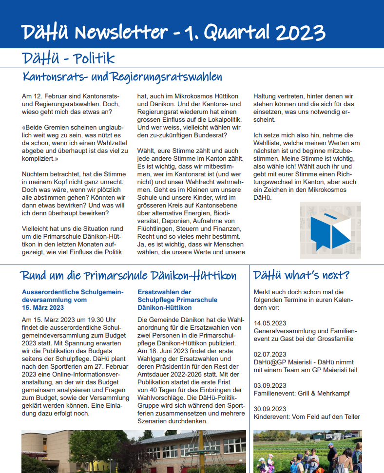 Verein DäHü / Präsident: Tomas Fort / Stv. Präsident Andreas Nigg, c/o Lettenring 25, 8114 Dänikon / info@daehue.ch